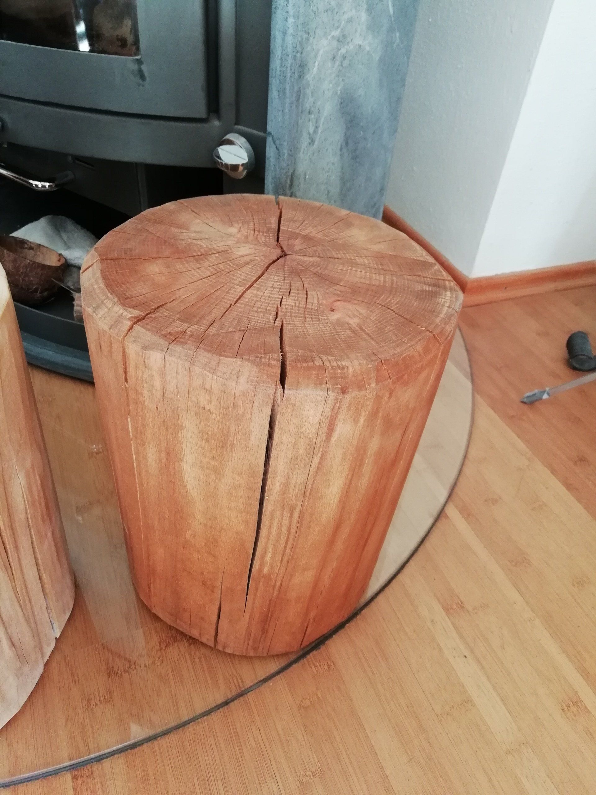 Buche massiv - 33cm hoch - Durchmesser ca. 24 cm - gehobelt und fein geschliffen - mit TeakÖl geölt.
