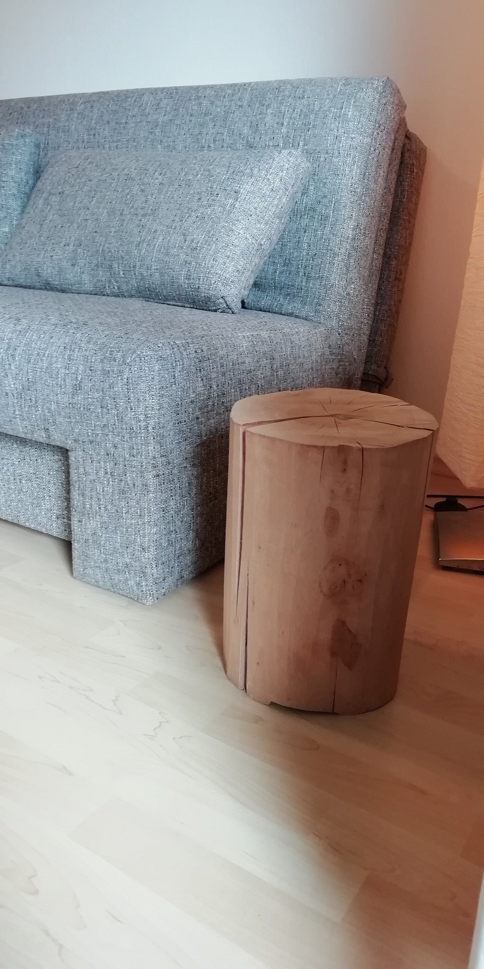 Buchenhocker ca. 35 cm hoch und Durchmesser ca. 24 cm. Gehobelt und fein geschliffen.