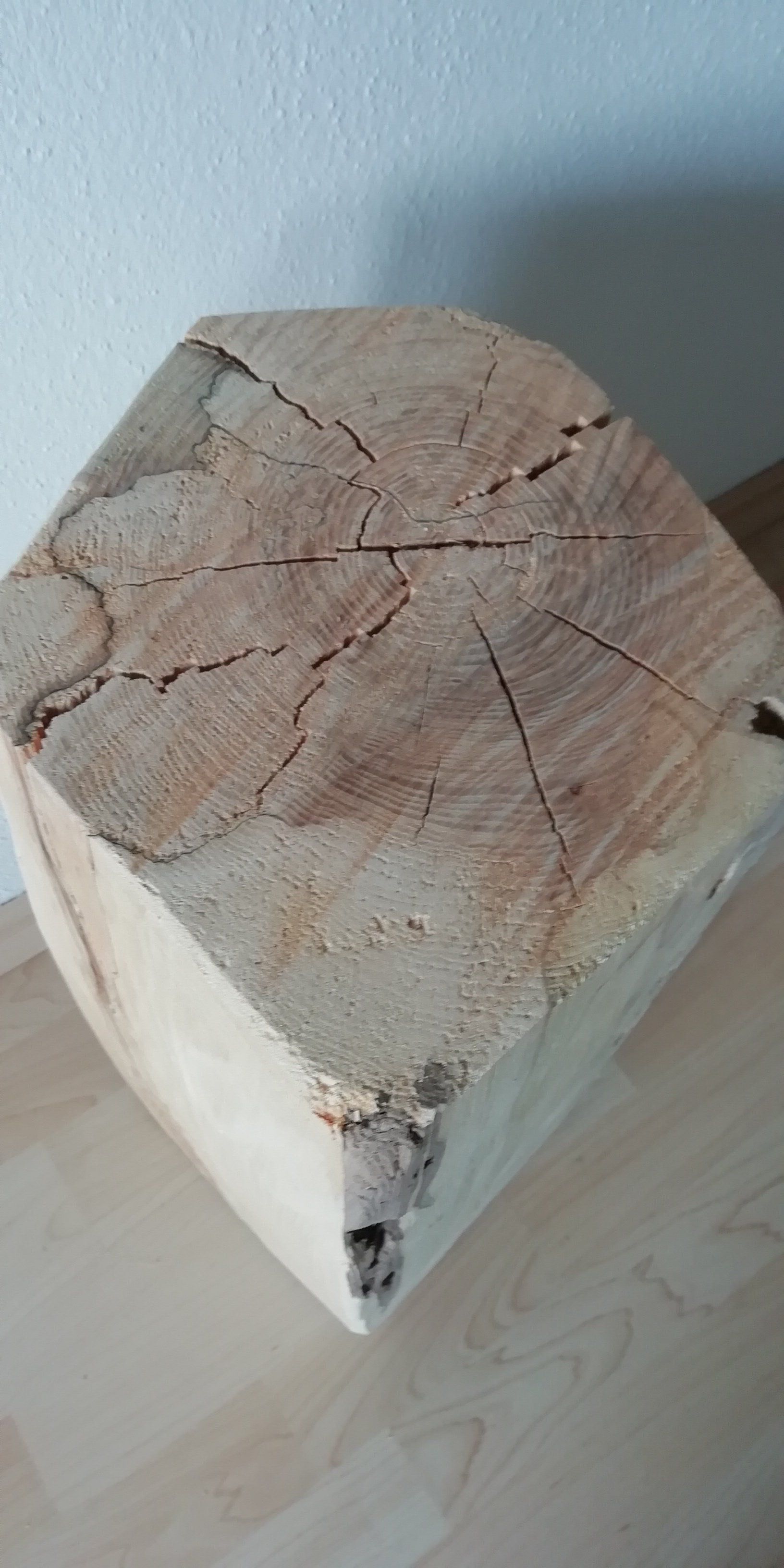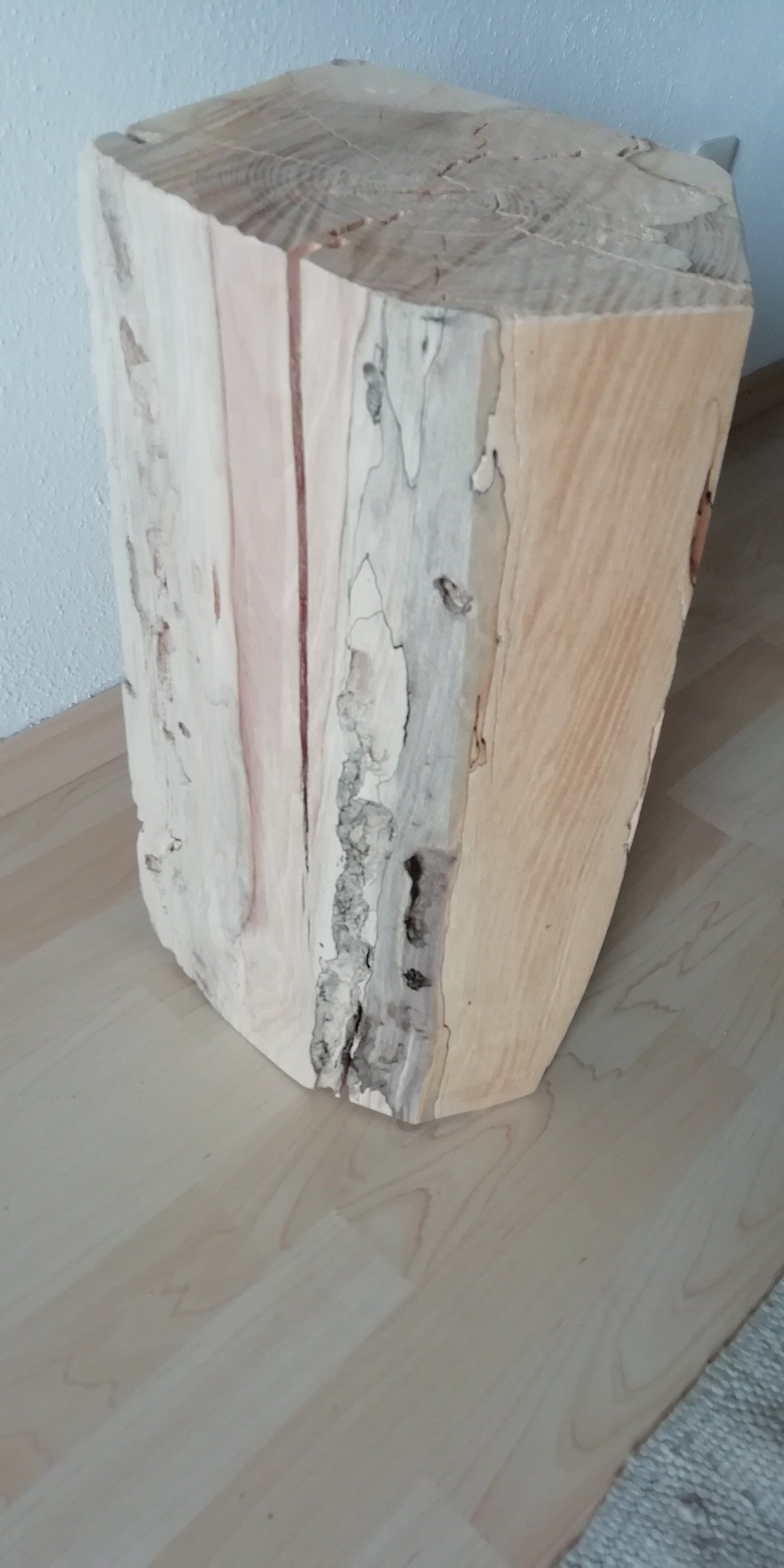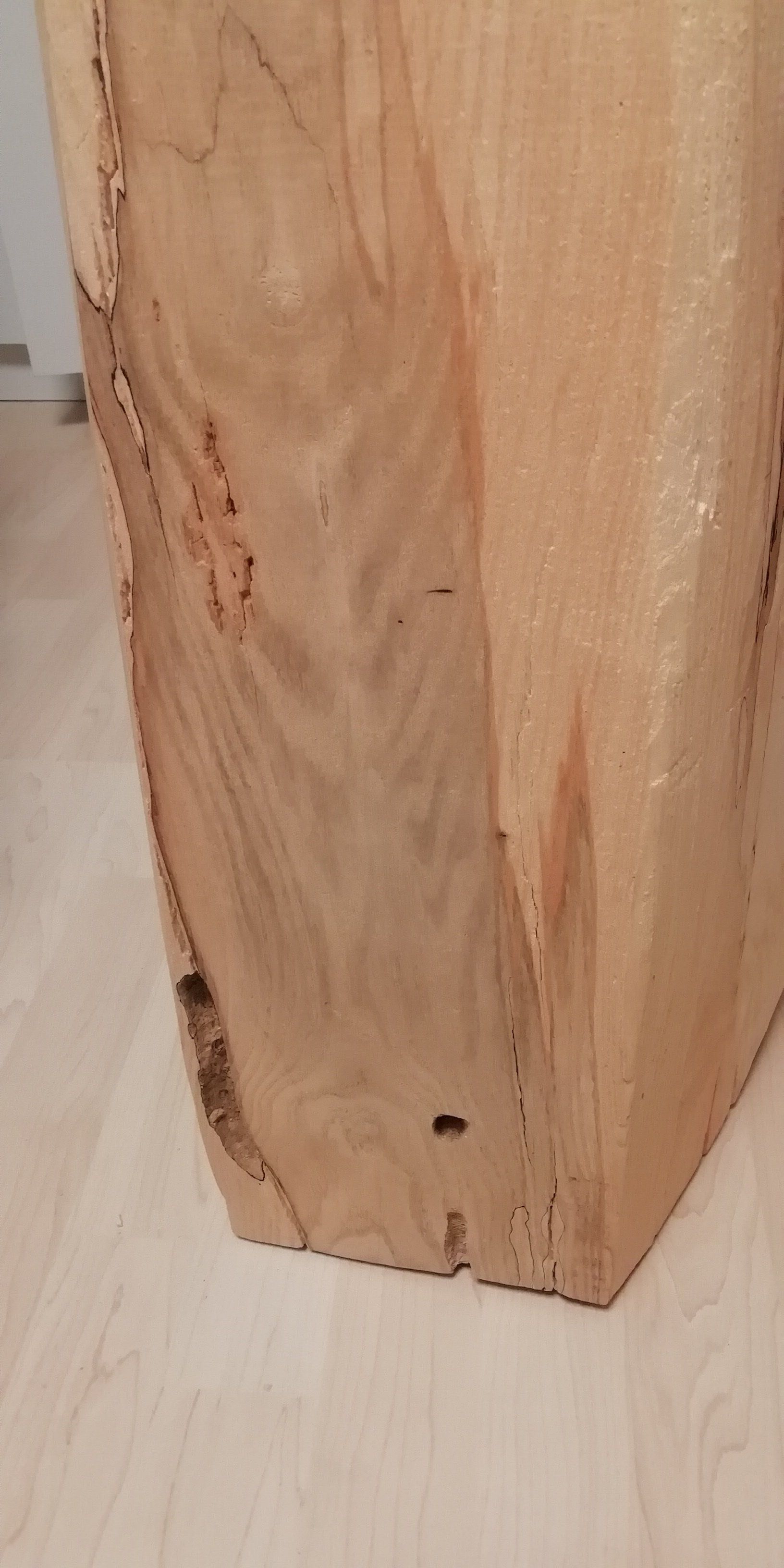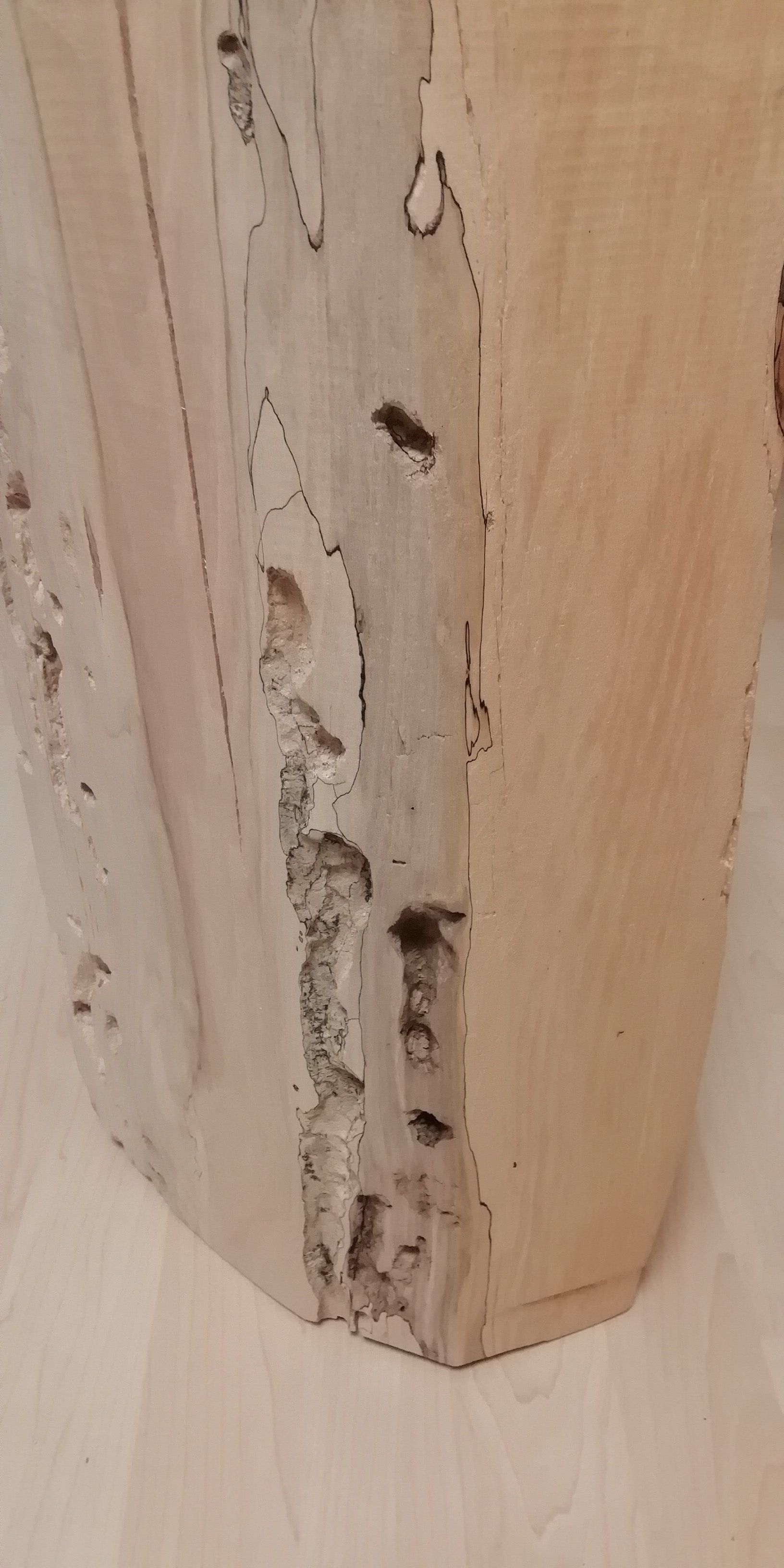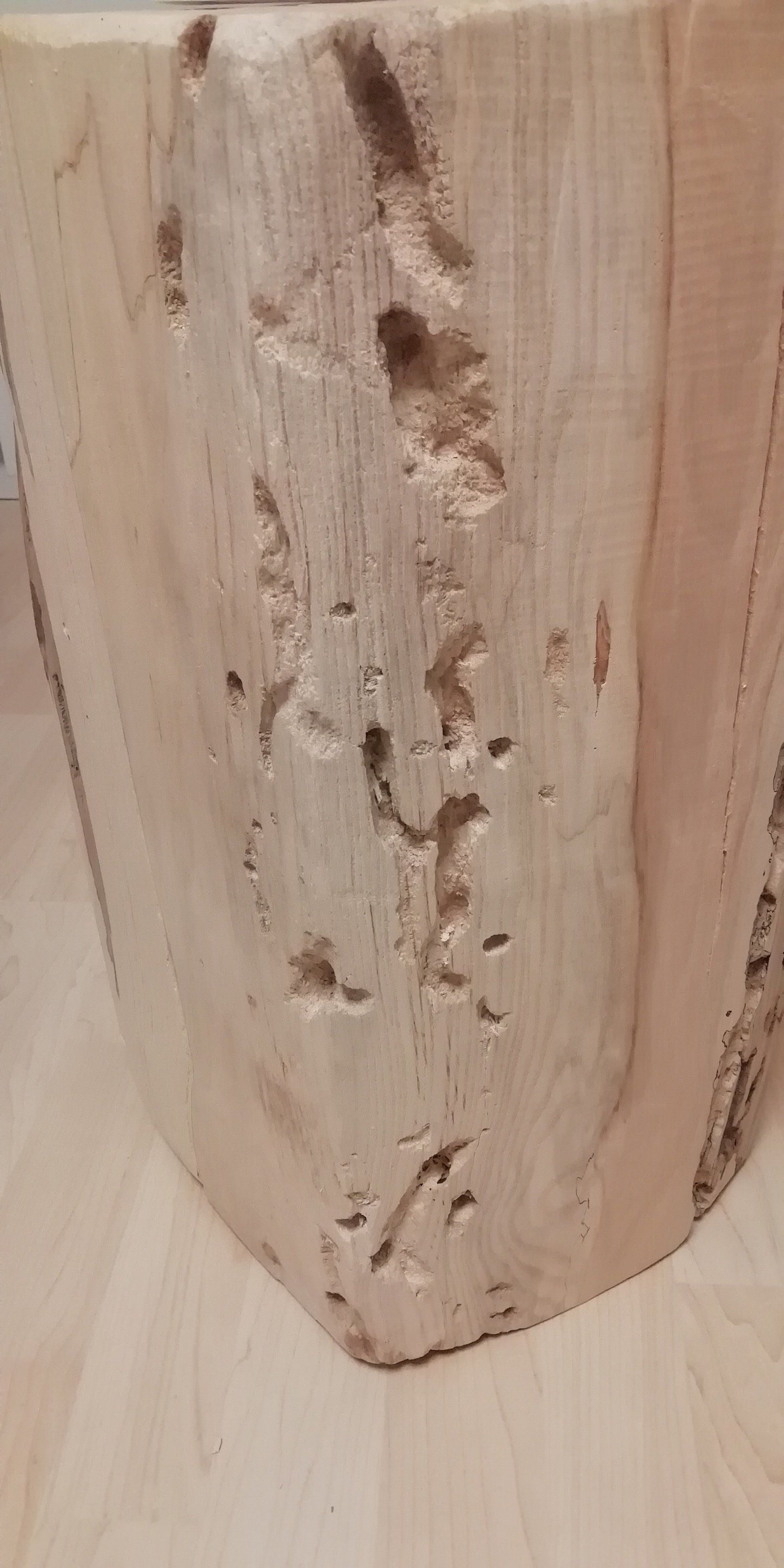 Faszierende Marmorierungen und Fisuren als auch Fraßspuren der "Bewohner" letzten 20 Jahre.