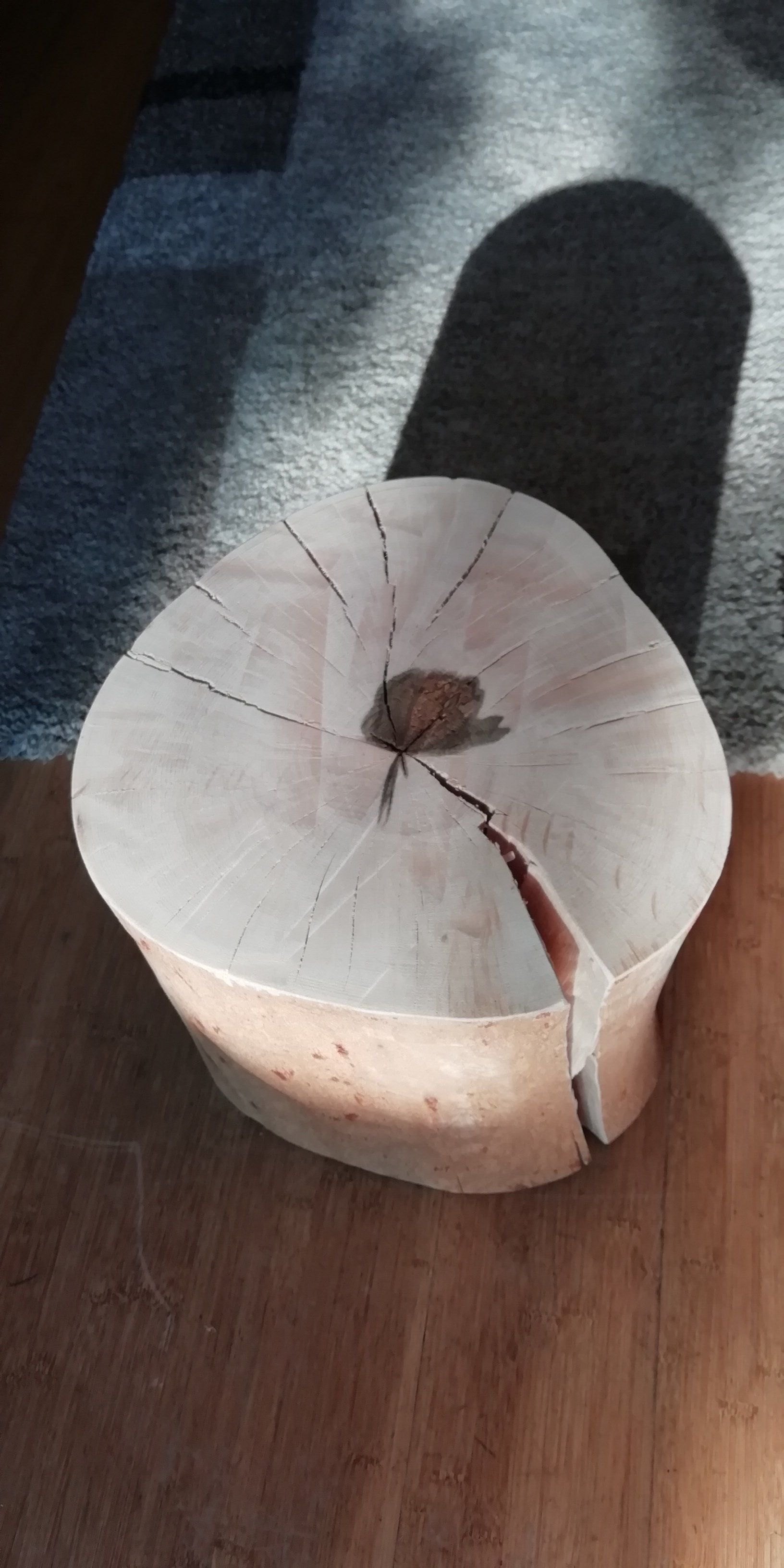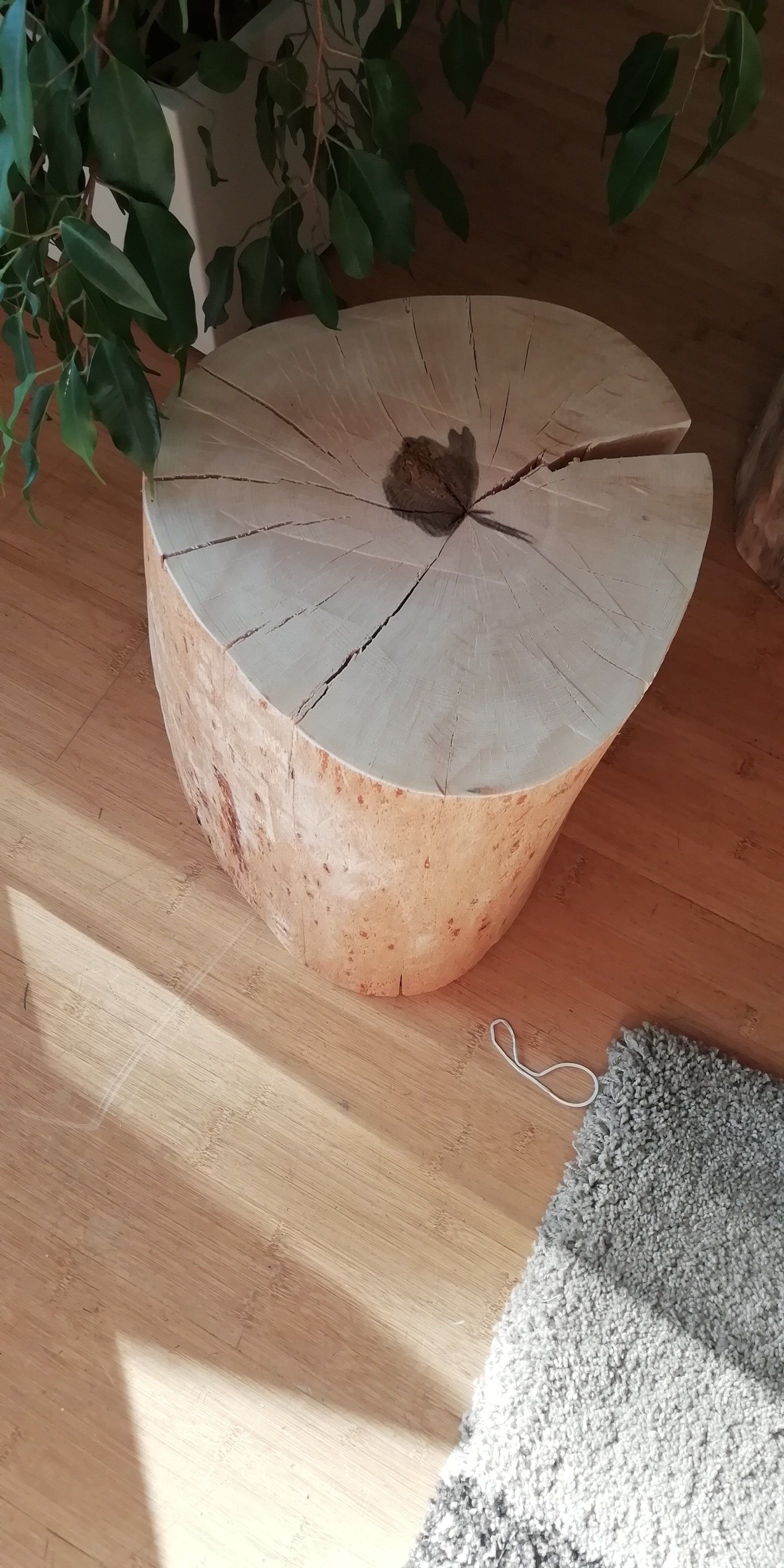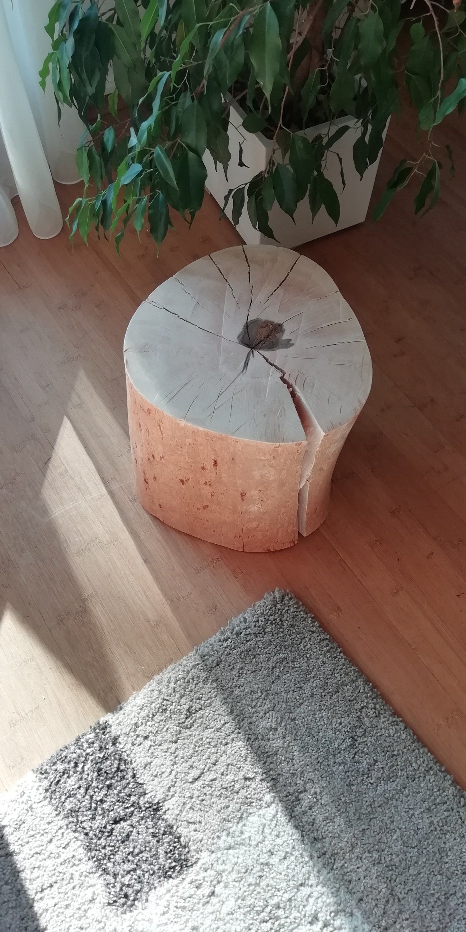 Hocker ca. 35 cm hoch und Durchmesser ca. 28 cm. Von Hand entrindet, gehobelt und fein geschliffen.