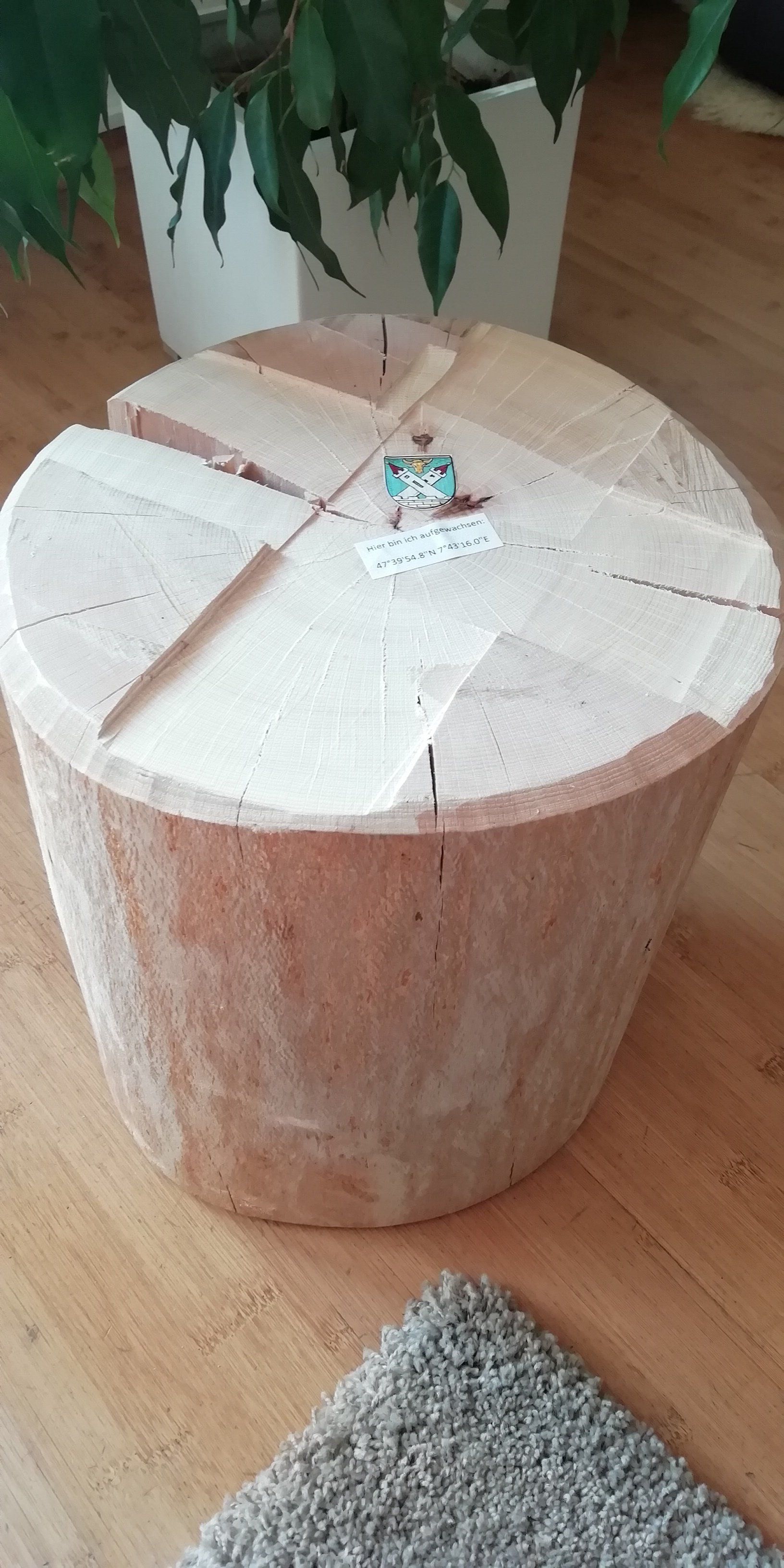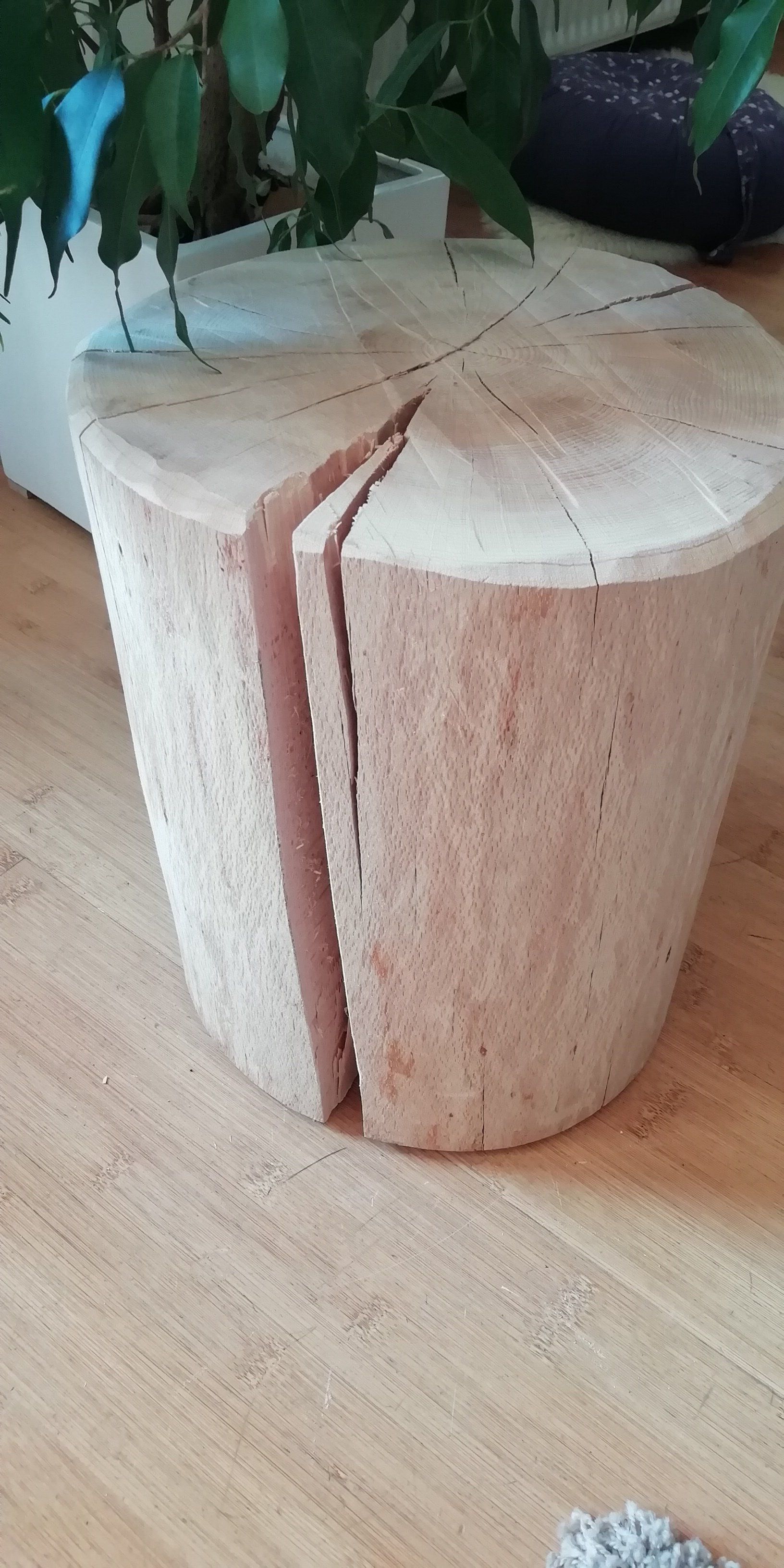 Buche massiv, von Hand entrindet, gehobelt und fein geschliffen. 33 cm hoch - Durchmesser ca. 28 cm