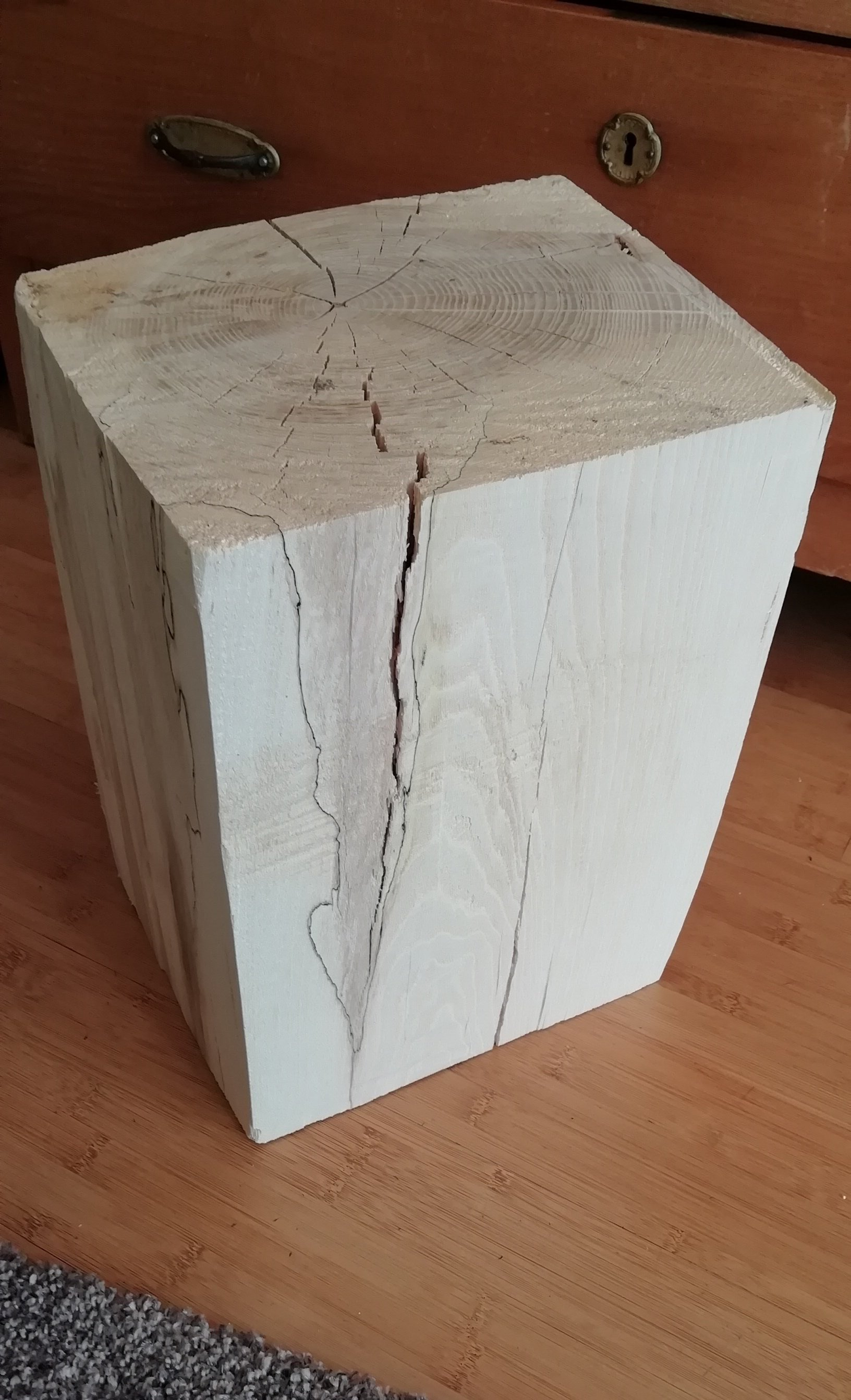 200j. Esche massiv, Sturm Lothar 2000, 20 Jahre im Wald ruhen lassen und nun mitten aus dem Stamm herausgesägt.