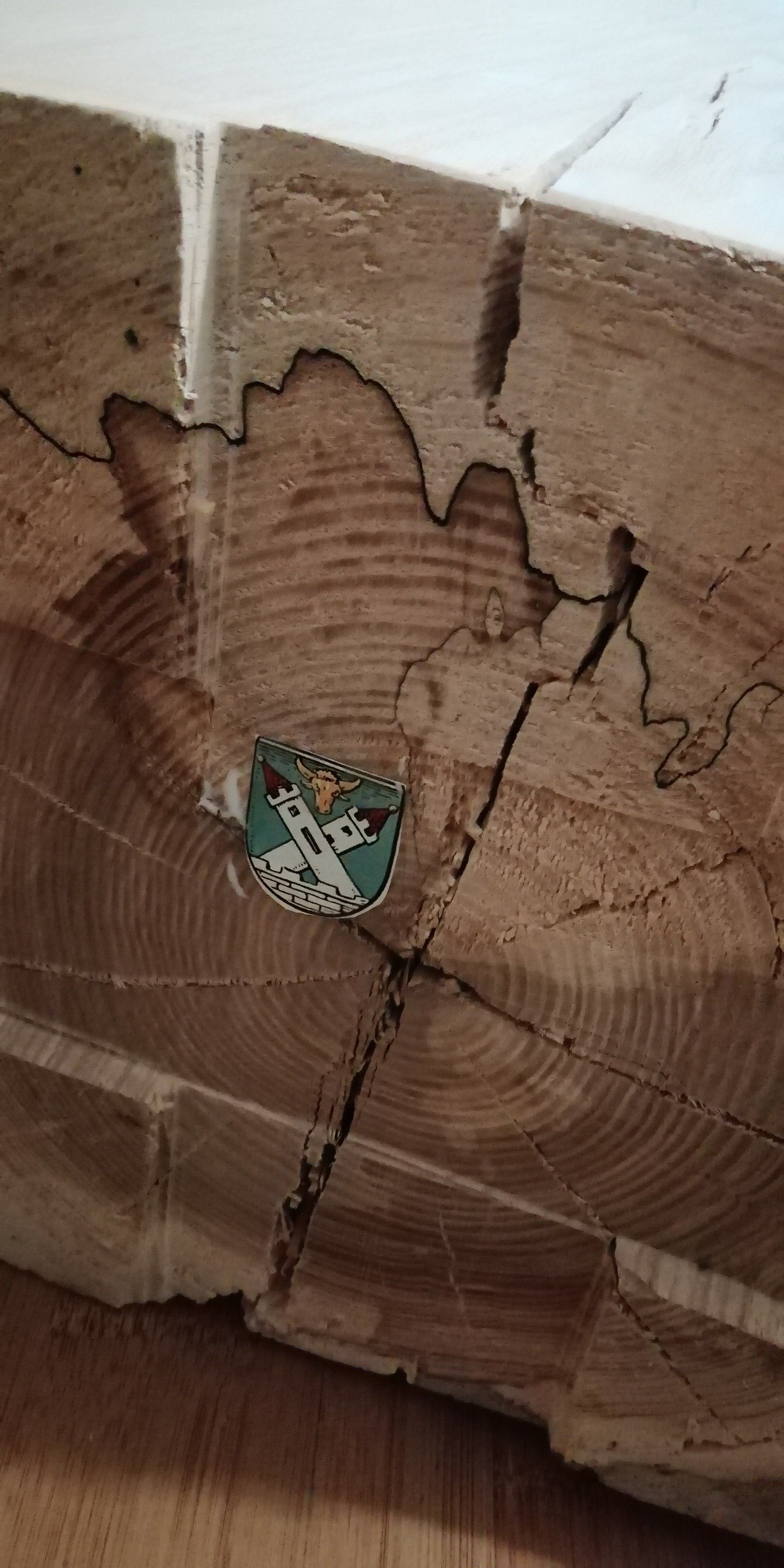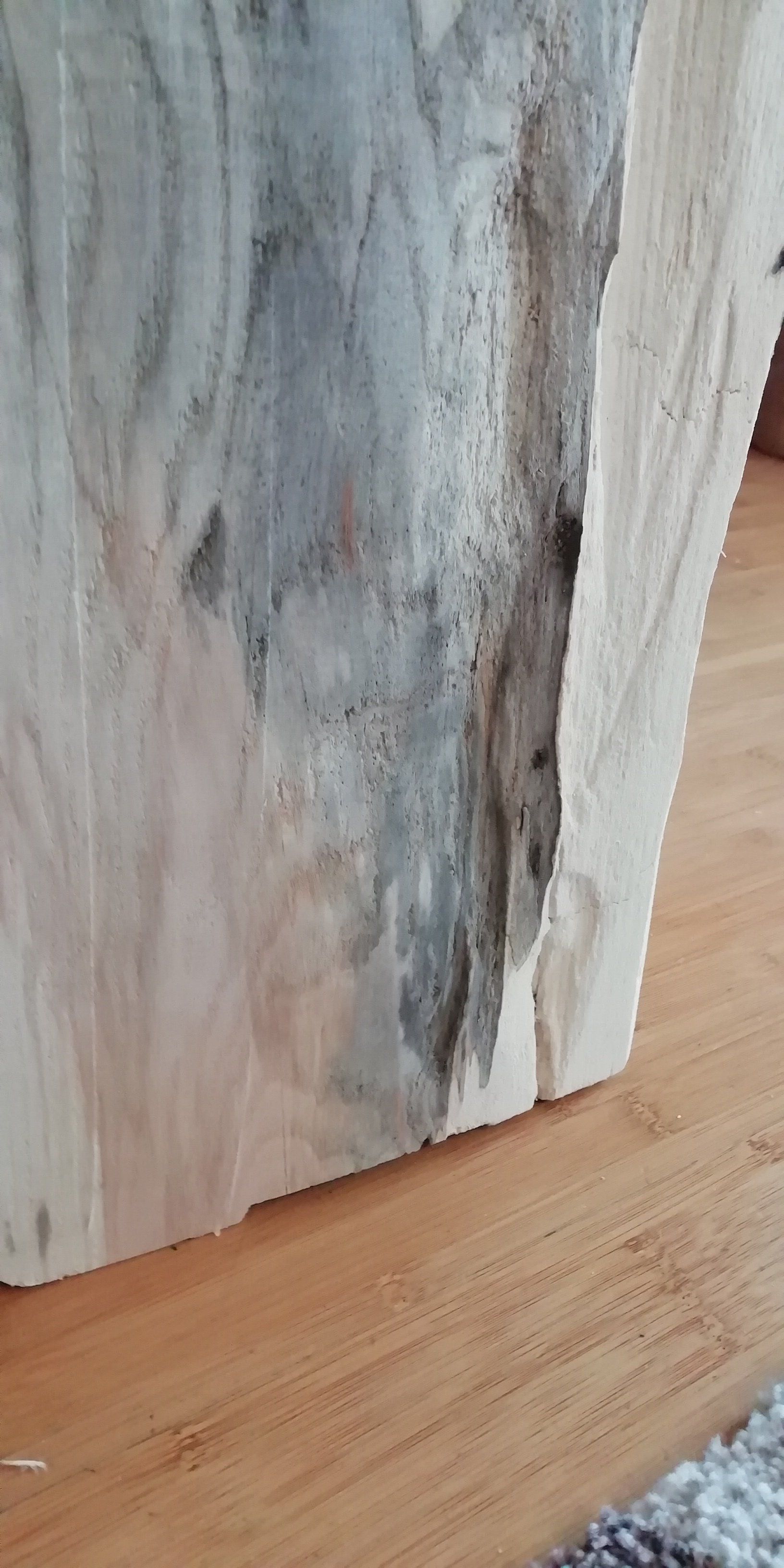 200j. Esche massiv, Sturm Lothar 2000, 20 Jahre im Wald ruhen lassen und nun mitten aus dem Stamm herausgesägt.