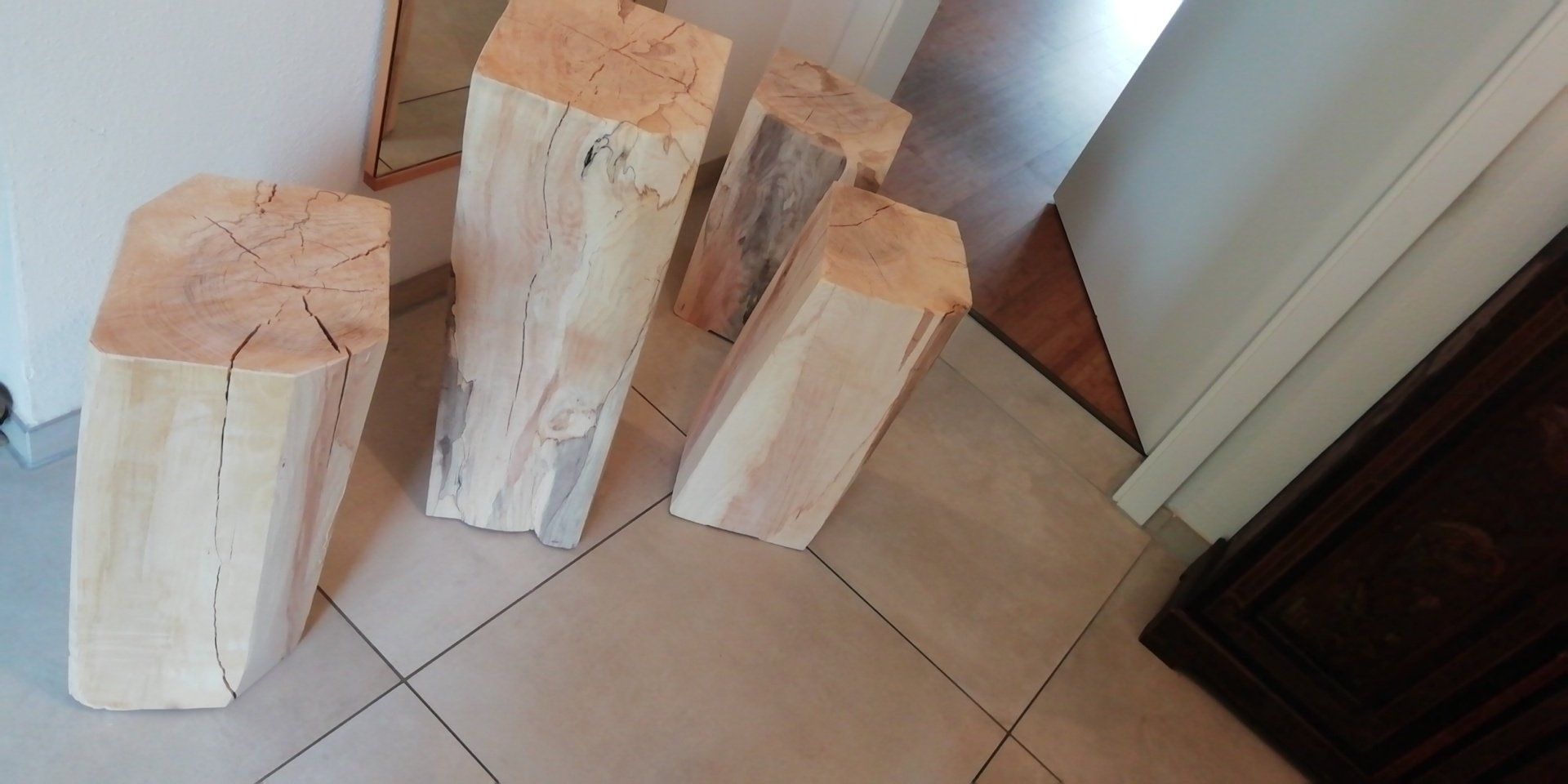 44 cm hoch - Durchmesser unten ca. 22x24 cm - Gehobelt und fein geschliffen.