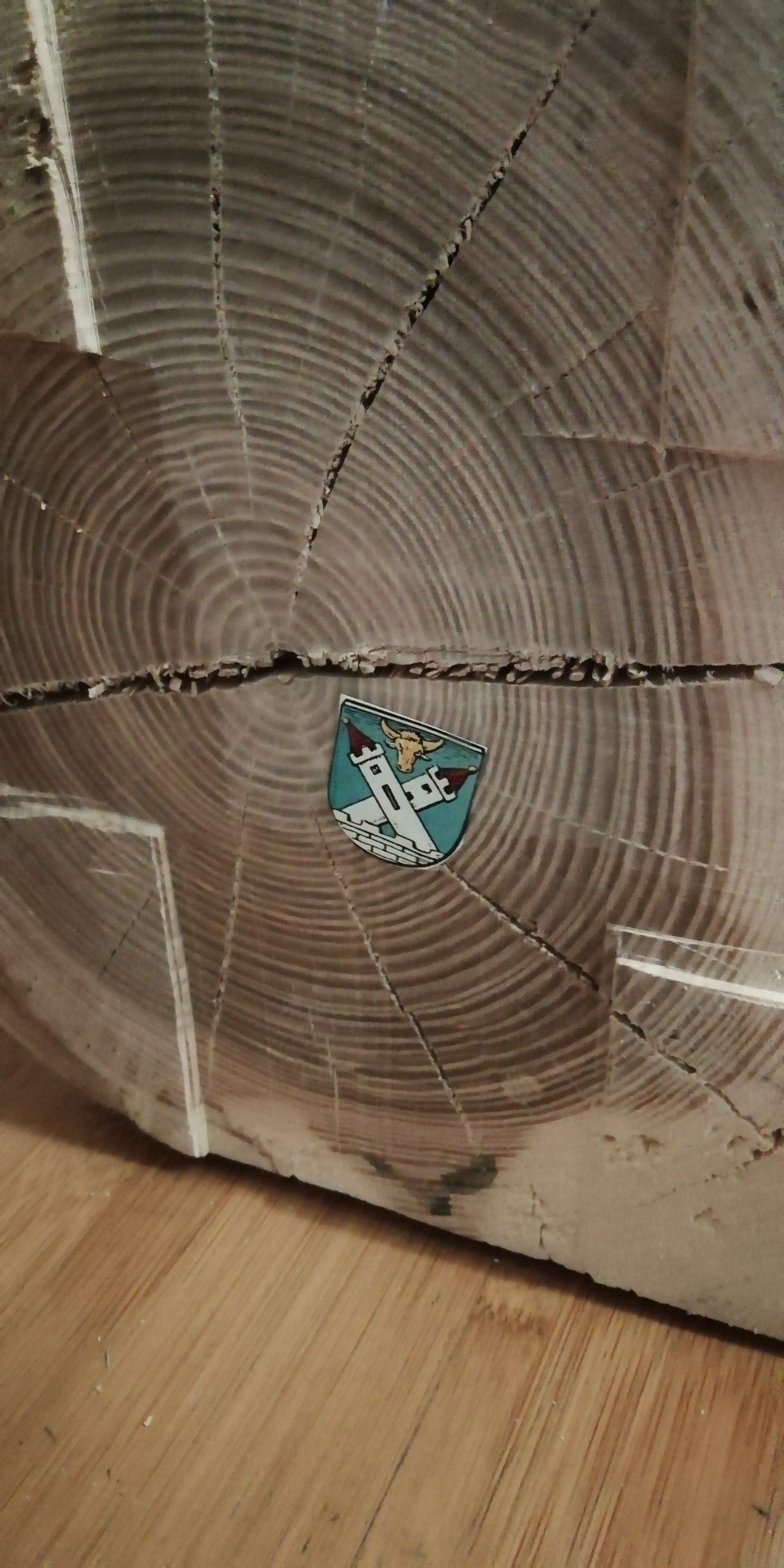 100 jährige Esche massiv, Sturm Lothar 2000, 20 Jahre im Wald ruhen lassen und nun aus der Mitte des Stamms herausgesägt.