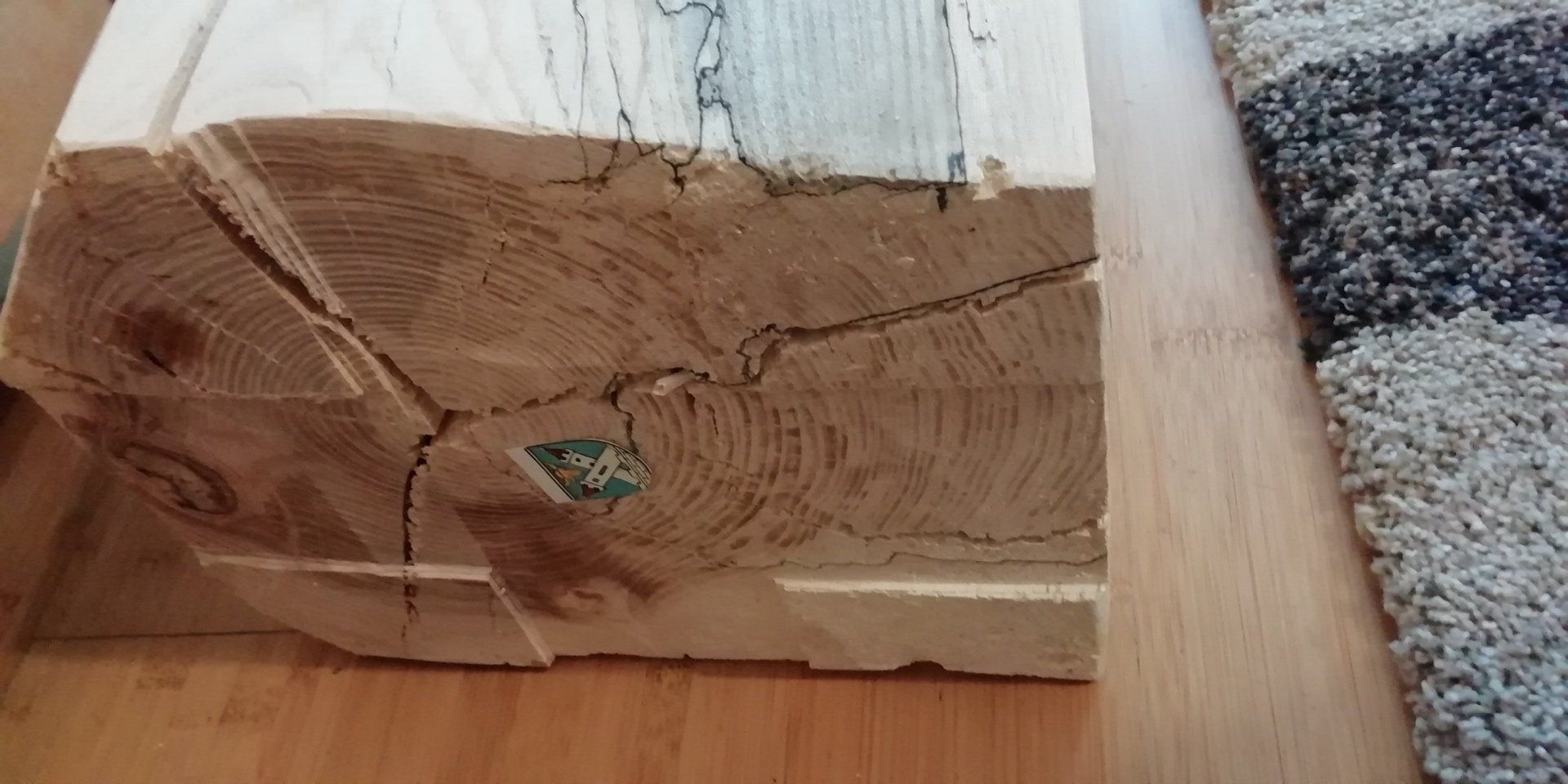 100 jährige Esche massiv, Sturm Lothar 2000, 20 Jahre im Wald ruhen lassen und nun aus der Mitte des Stamms herausgesägt.