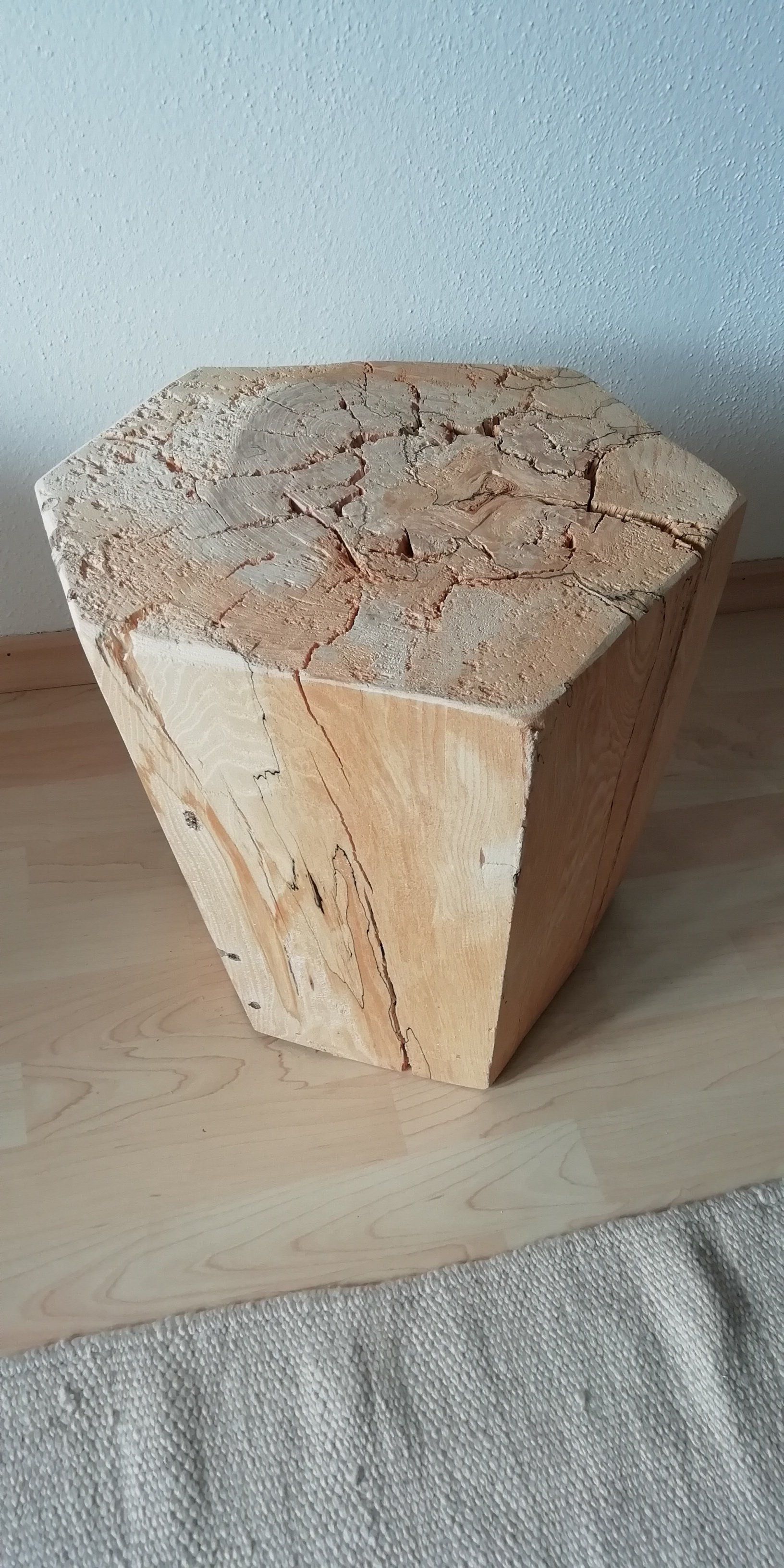 38 cm hoch - Durchmesser unten ca. 36x39 cm - Gehobelt und fein geschliffen. Kanten gehobelt