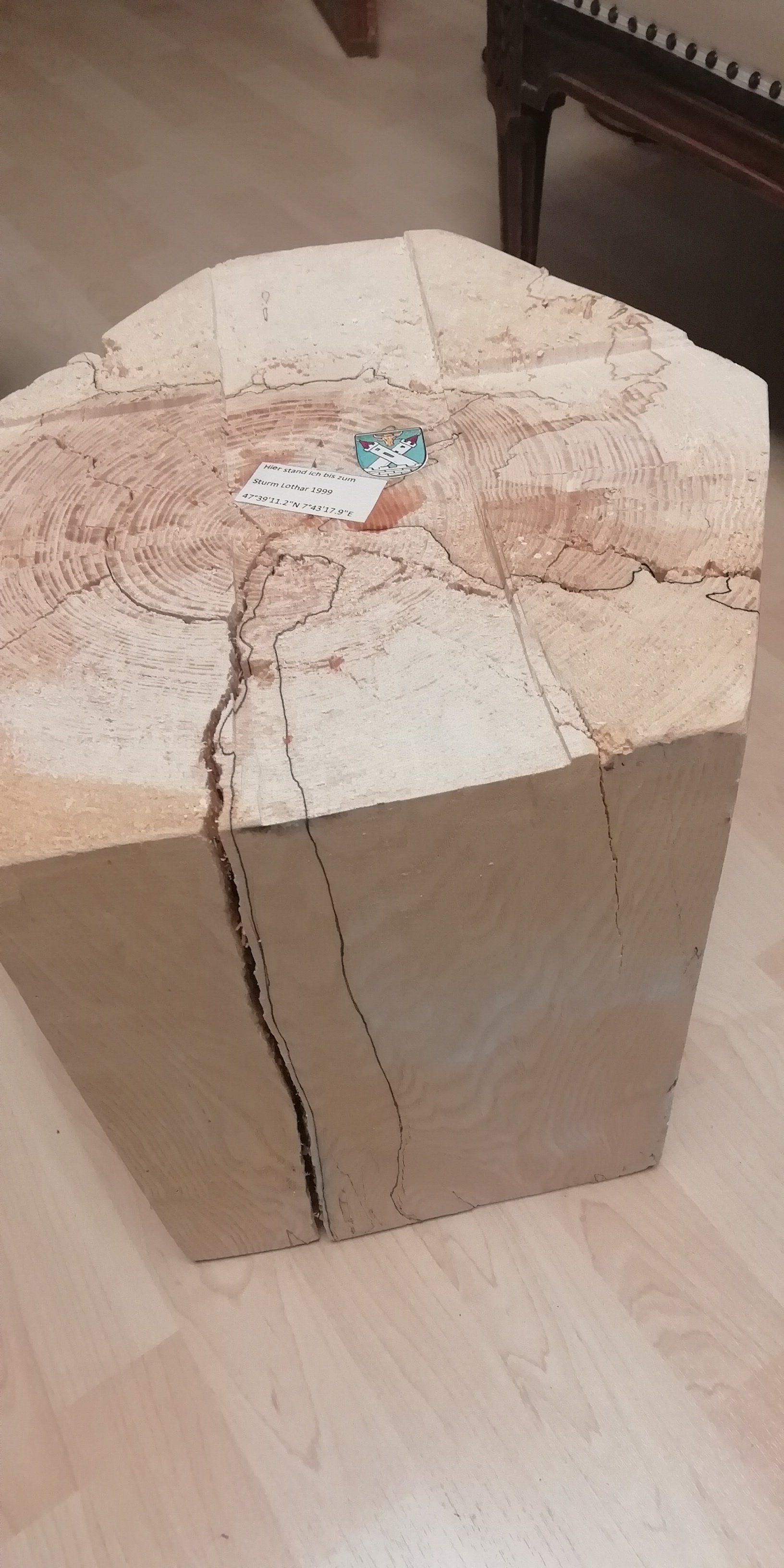 200j. Esche massiv, Sturm Lothar 2000, 20 Jahre im Wald ruhen lassen und nun mitten aus dem Stamm herausgesägt.