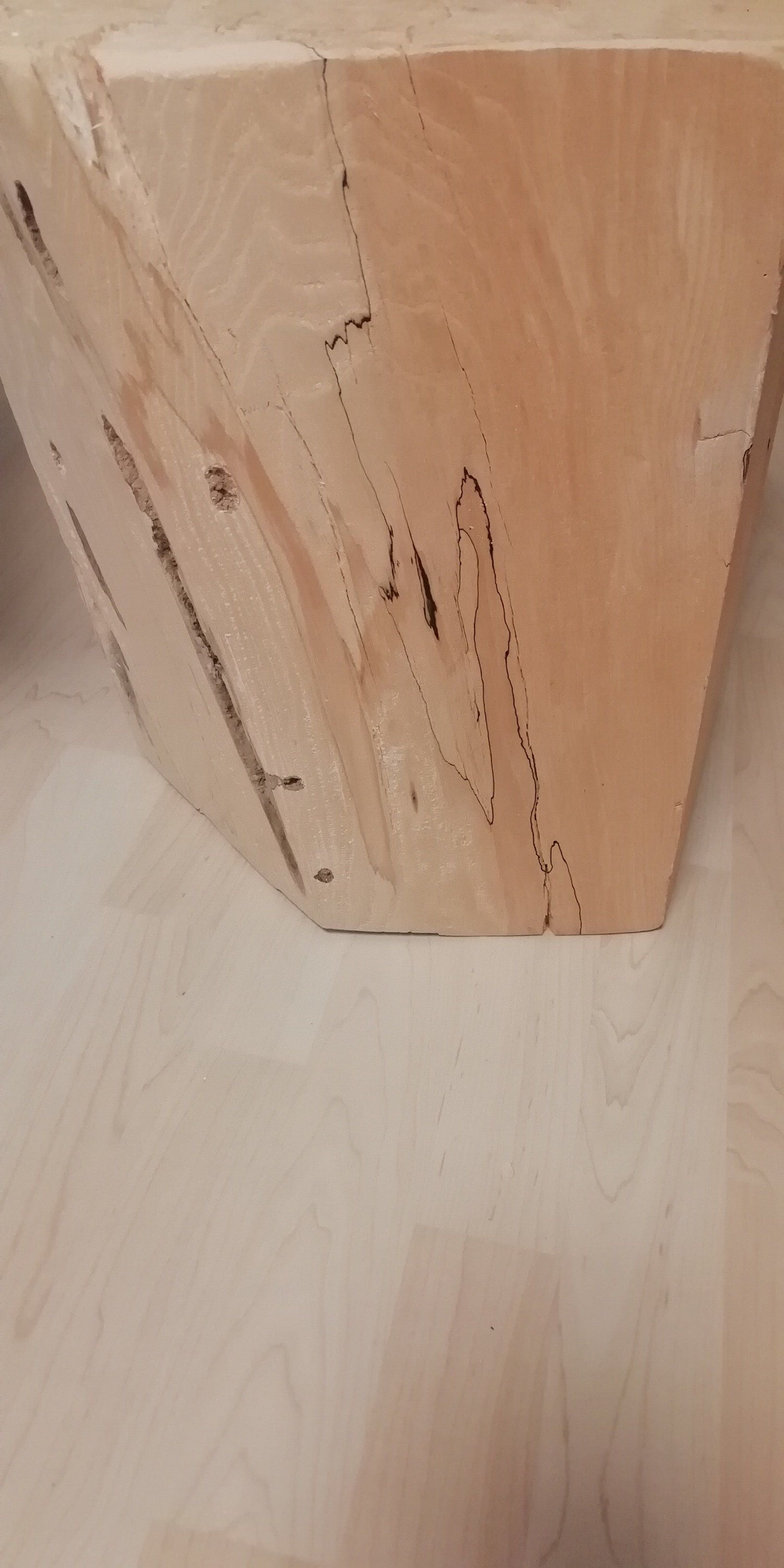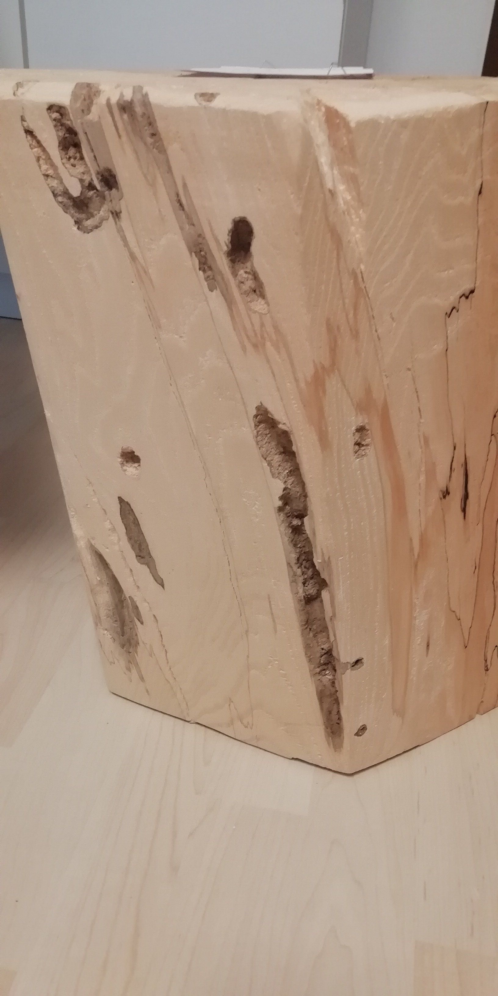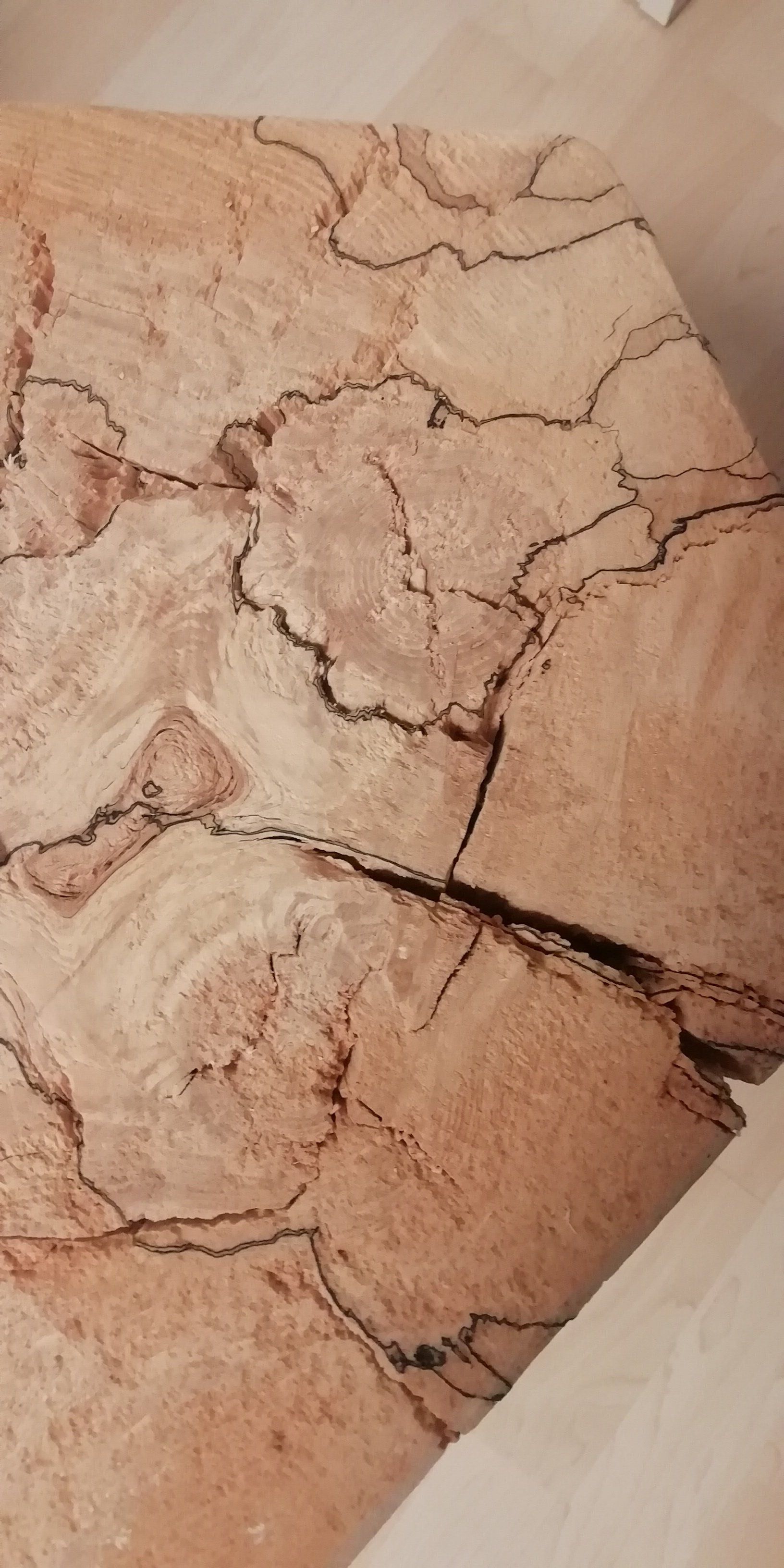 Faszierende Marmorierungen und Fisuren als auch Fraßspuren der "Bewohner" letzten 20 Jahre.