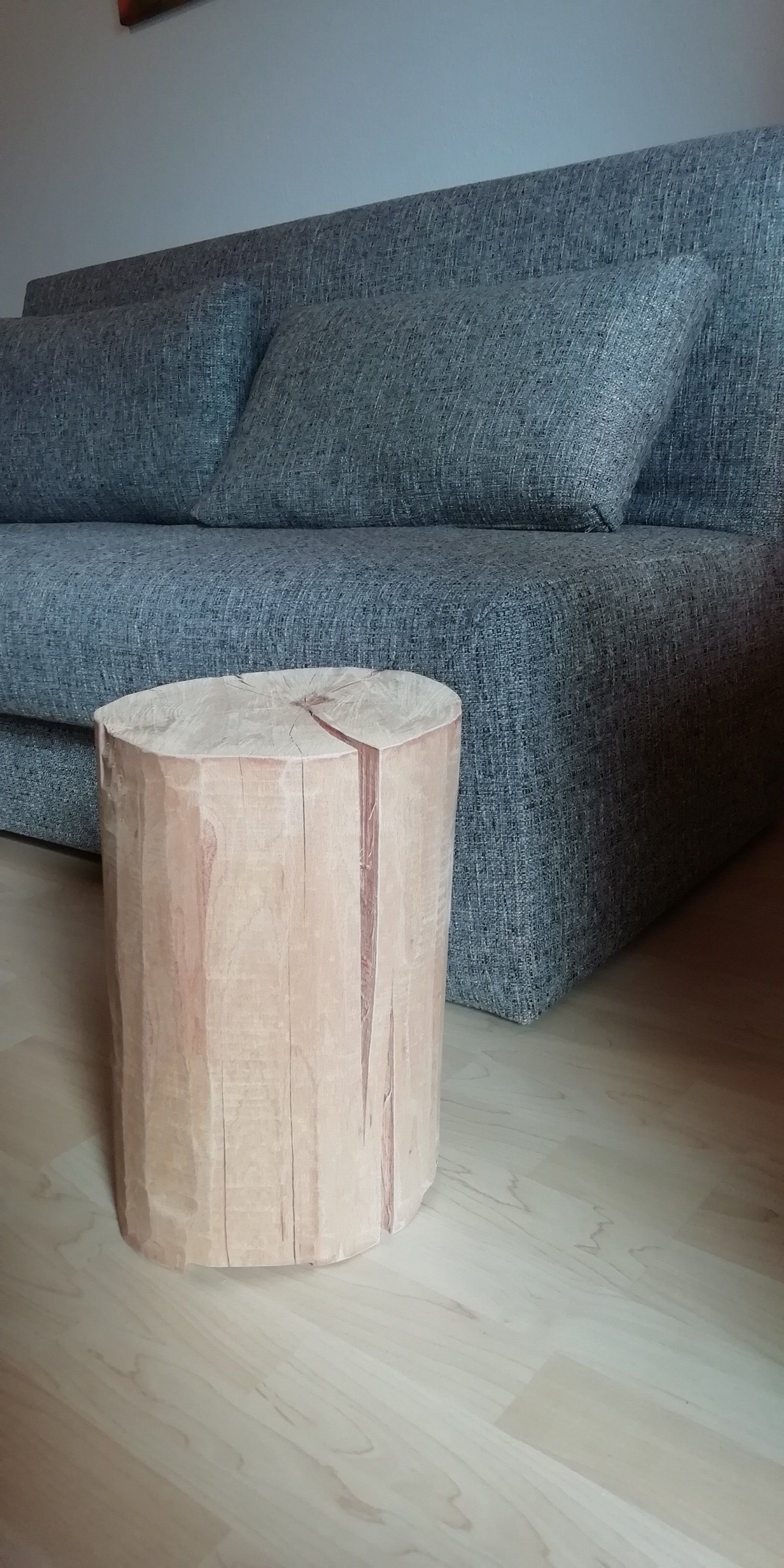 Buchenhocker ca. 35 cm hoch und Durchmesser ca. 24 cm. Gehobelt und fein geschliffen.